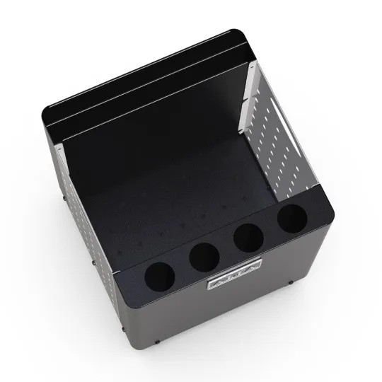 Le due tasche e i 4 fori forniscono un posto comodo dove riporre le tue pale, mentre l’alloggiamento centrale è una soluzione elegante per contenere la legna o i rifiuti.