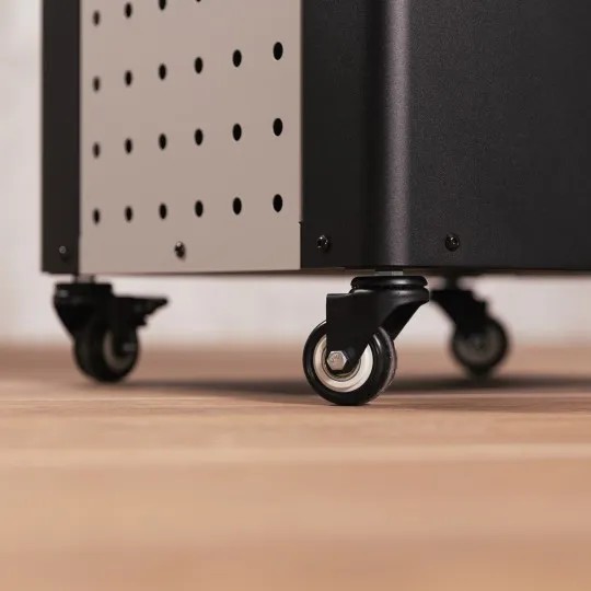 Grazie alle ruote e alle asole che permettono di sollevarlo facilmente, può essere spostato senza fatica da una zona all’altra dello spazio esterno, secondo necessità.