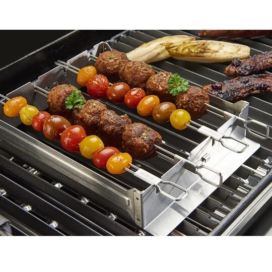Broil King Supporto Spiedini A Doppia Asta In Acciaio Inox , Dotato Di 4 Spiedini A Doppia Asta Orientabili A doppia Posizione Dimensioni 297 x 227 x 76 mm