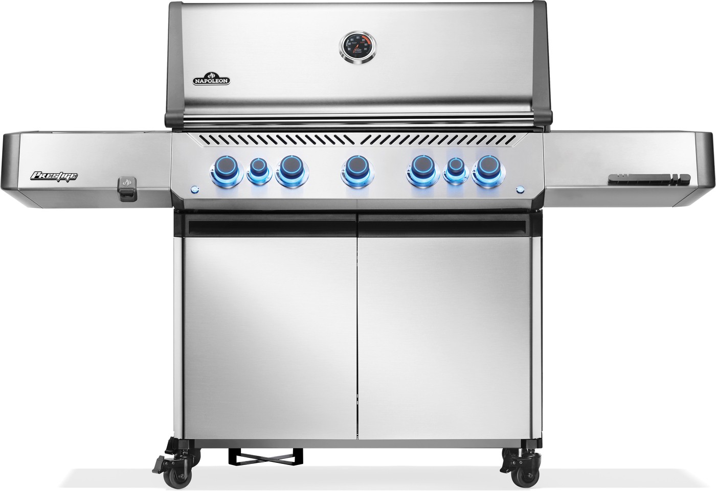 Il Napoleon Prestige® 665 a gas naturale in acciaio inox offre prestazioni professionali grazie al bruciatore laterale e posteriore a infrarossi, ideali per scottature perfette e cotture uniformi con girarrosto. Il grande forno per girarrosto e la stazione a infrarossi migliorano la versatilità, mentre le manopole LED con SafetyGlow™ si illuminano di rosso quando il gas è attivo, aumentando la sicurezza. Lo scaldavivande a scomparsa e i ganci nascosti per utensili mantengono tutto in ordine. Con un design moderno ed elegante, il Prestige 665 unisce stile e funzionalità per un’esperienza di grigliata superiore.
