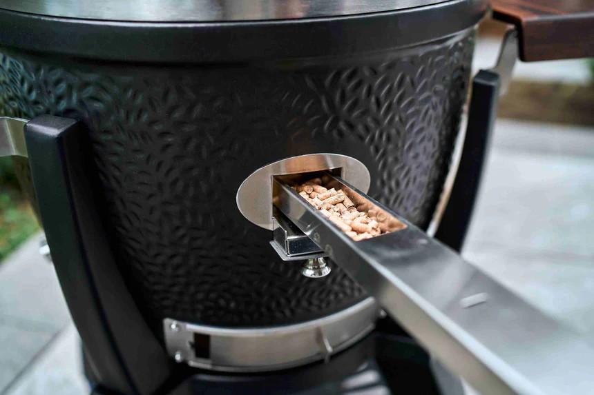 Controllo del calore e fumo curato: grazie a guarnizioni in acciaio/fibra di vetro, sistema di ventilazione e un cestello carbone divisibile per gestire meglio la temperatura e il consumo di carbone.